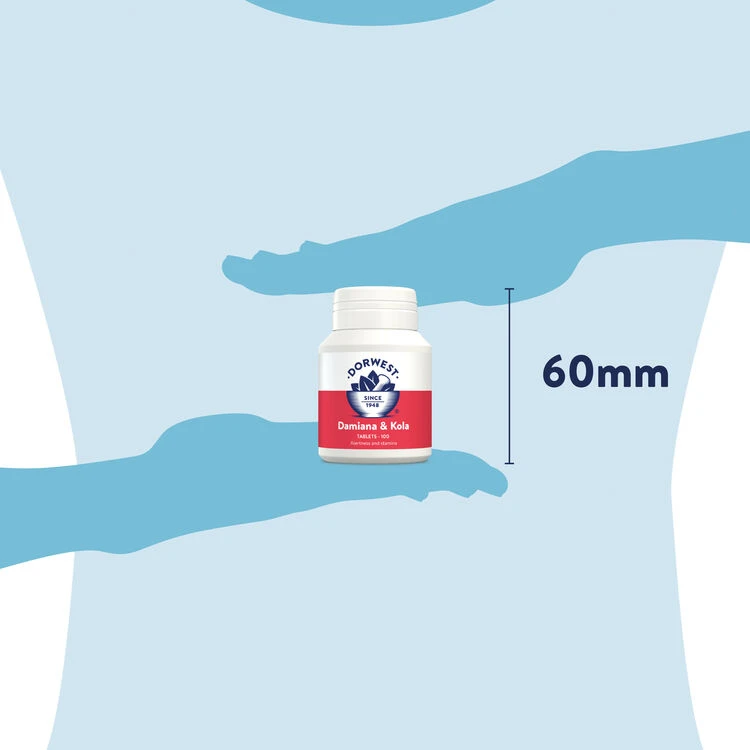 Damiana and Kola Tablets can be used to increase alertness, vitality and stamina. Perfect for show dogs and those feeling lacklustre.
